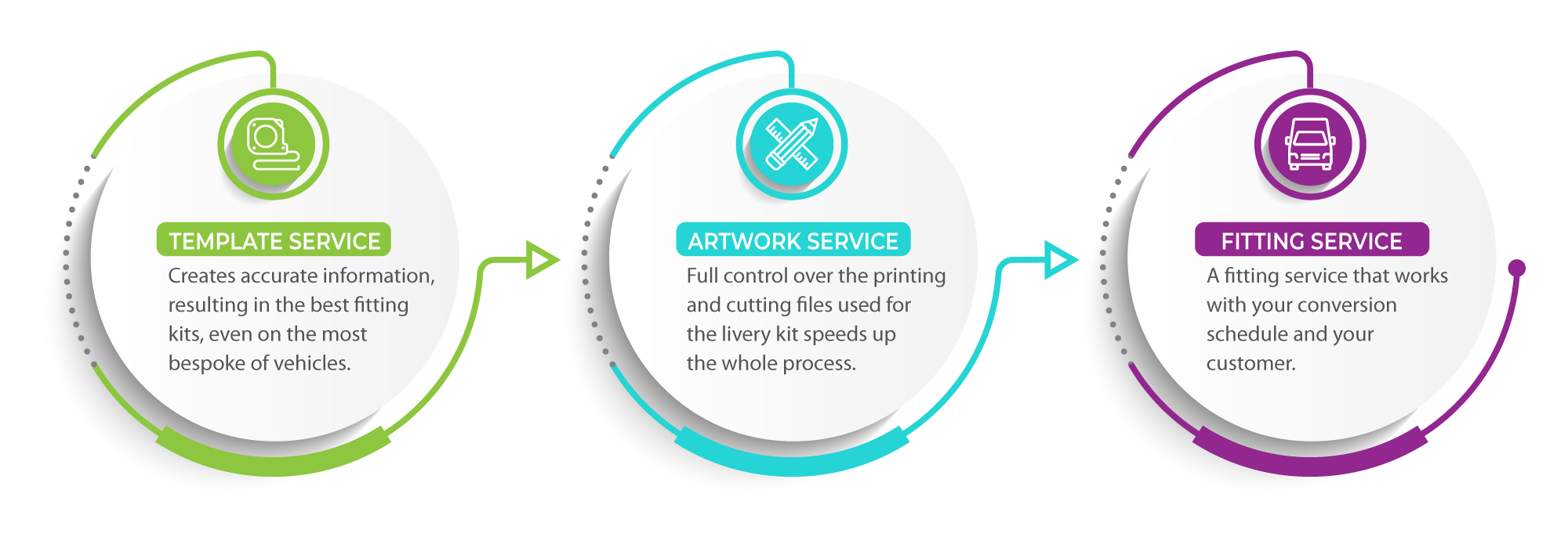 To help your conversion process run smoothly, partner with a livery supplier than can provide the whole package – from vehicle templating, livery design, print, manufacture and application of the livery. The complete fleet livery service keeps you in control of your conversion and limits the possibility for bumps in the road.